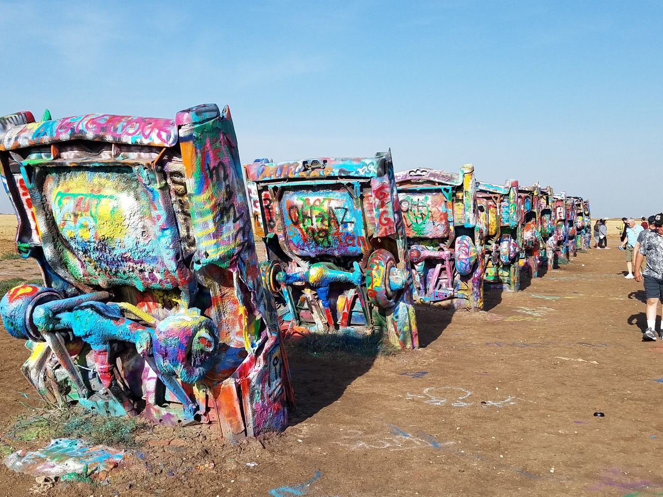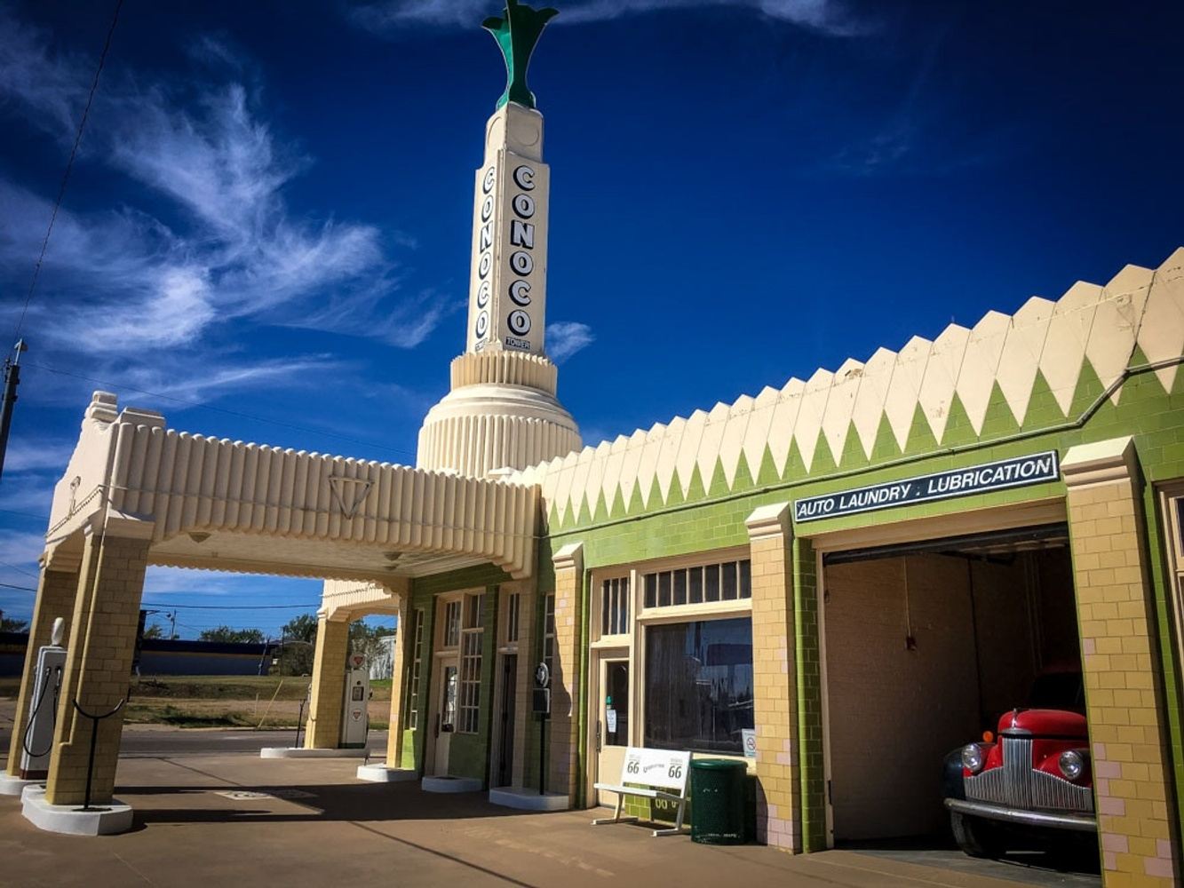 Featured Stops: Cadillac Ranch, Midpoint Cafe, Russell's Travel Center, Tucumcari motels/shops, Route 66 Auto Museum, 66 Diner